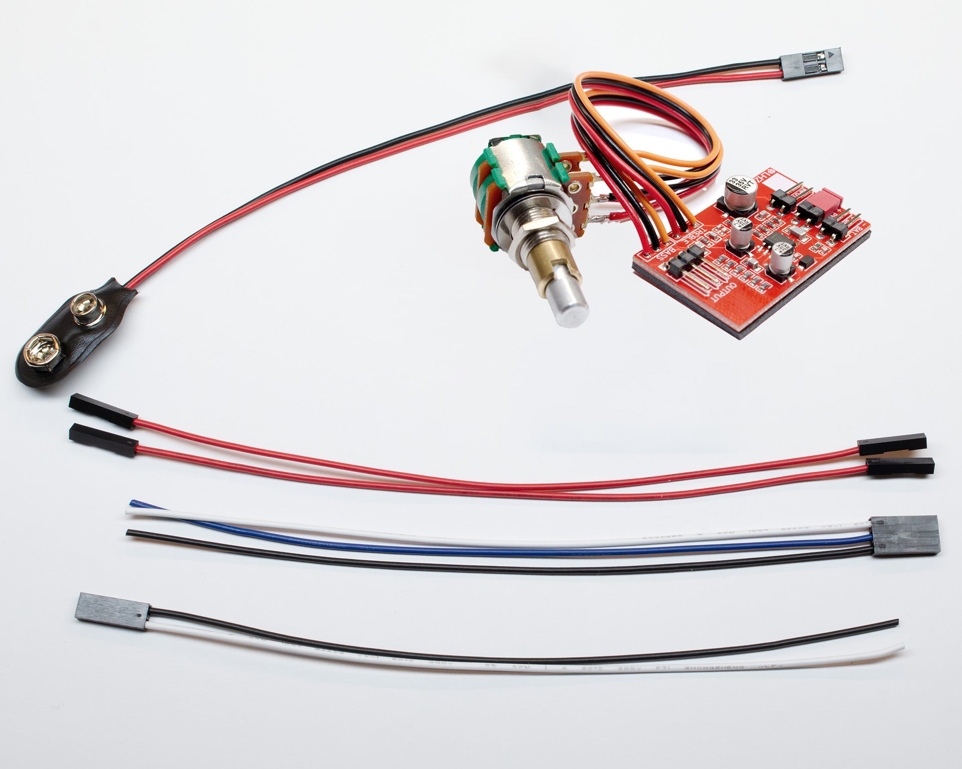 - One LHZ-04 Preamp with a pre-wired CONCENTRIC center-detent potentiometer (bass and treble in single unit that uses only a single mounting hole) and DuPont-compatible pin headers that are compatible with EMG modular controls using quick-disconnects,