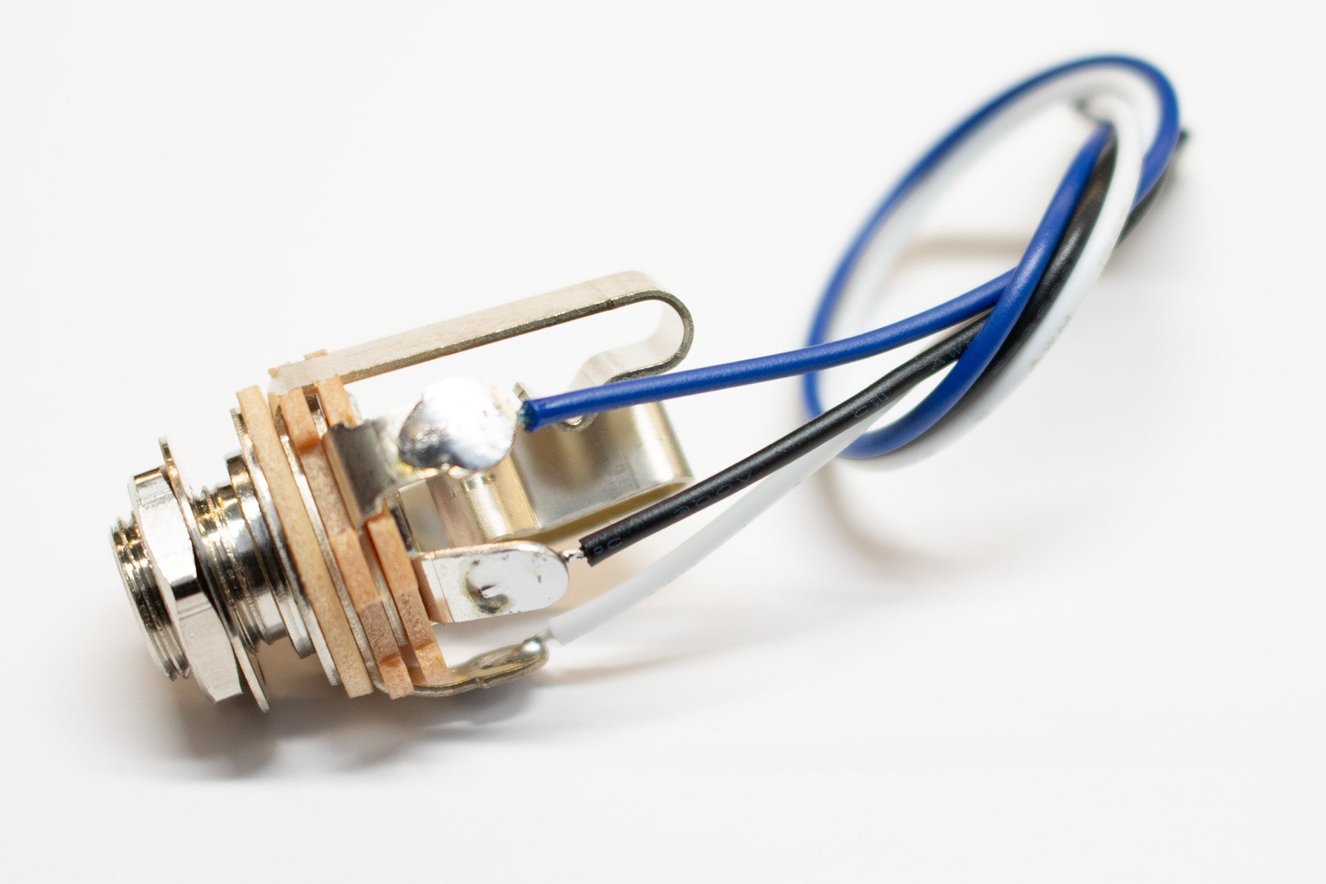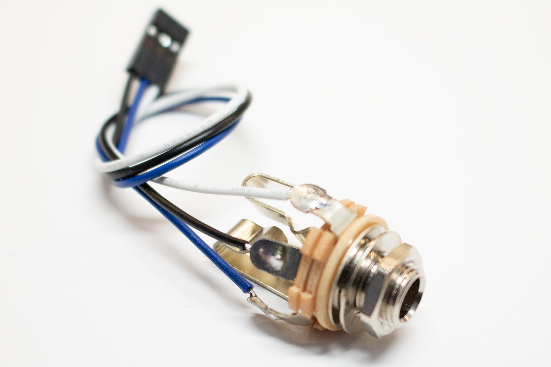 The SW12BKIT is a Switchcraft 12B open-frame TRS jack prewired to a 3-pin DuPont connector intended to plug directly into the TRS OUTPUT connector on our LHZ preamps. This open-frame style of jack is commonly used on basses where the jack mounts on a pickguard or a dedicated jack plate.